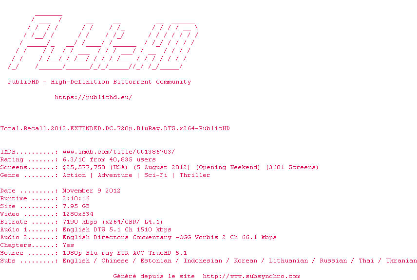Telechargez le RSS « Fichier de la release Total.Recall.2012.EXTENDED.DC.720p.BluRay.DTS.x264-PublicHD »
