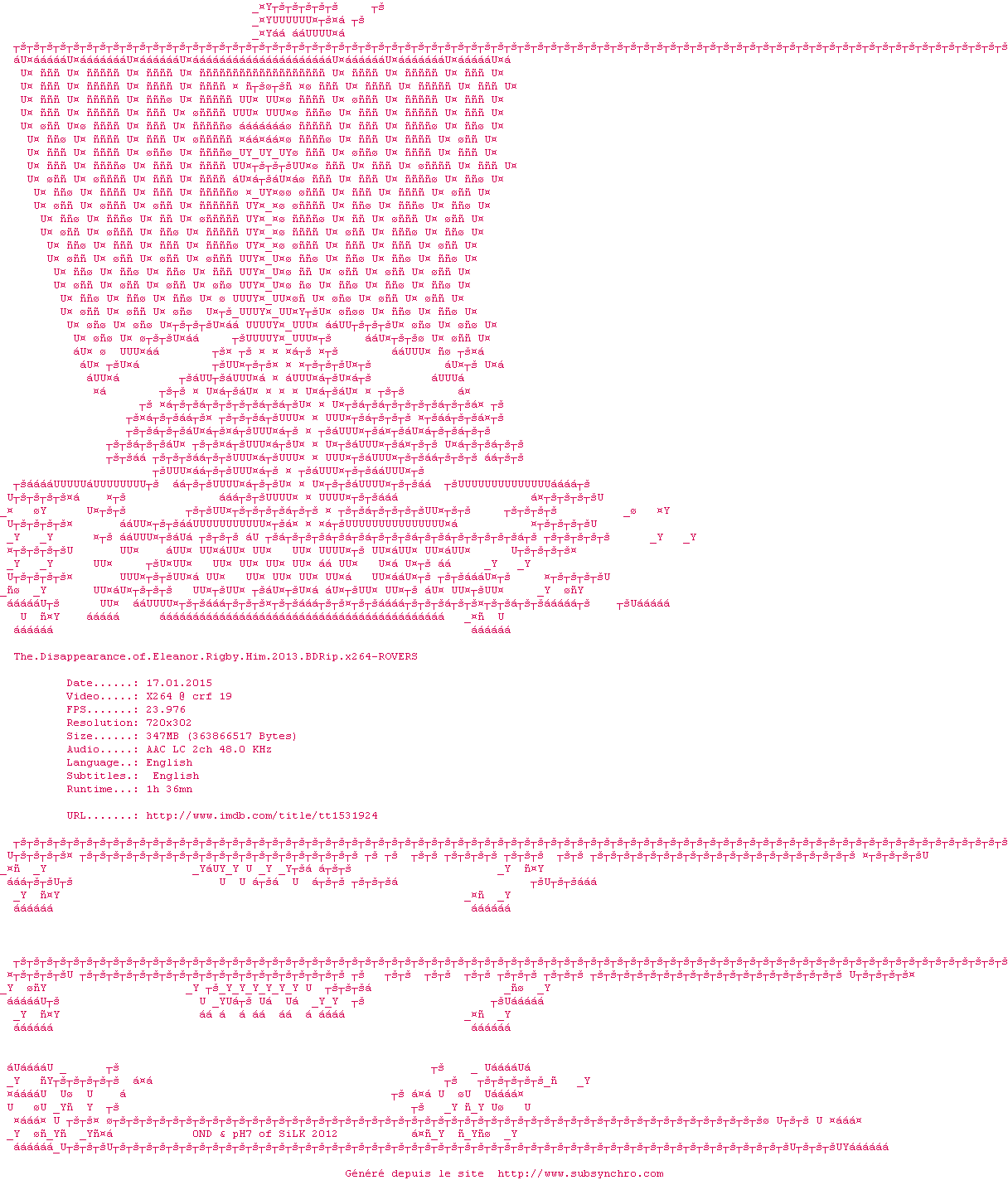 Voir le nfo de la release The.Disappearance.of.Eleanor.Rigby.Him.2013.BDRip.x264-ROVERS