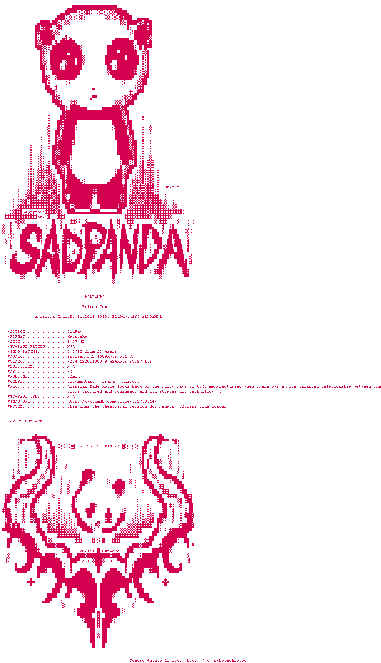 Voir le nfo de la release American.Made.Movie.2013.1080p.BluRay.x264-SADPANDA