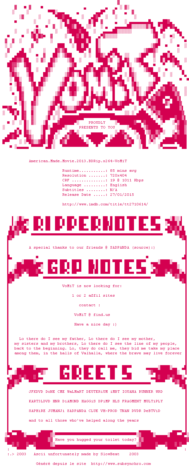 Voir le nfo de la release American.Made.Movie.2013.BDRip.x264-VoMiT