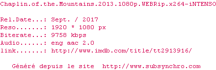 Voir le nfo de la release Chaplin.Of.The.Mountains.2013.1080p.WEBRip.x264-iNTENSO