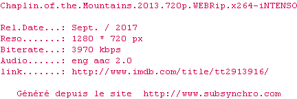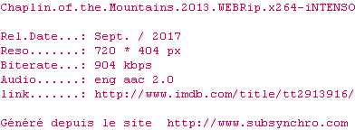 Voir le nfo de la release Chaplin.Of.The.Mountains.2013.WEBRip.x264-iNTENSO