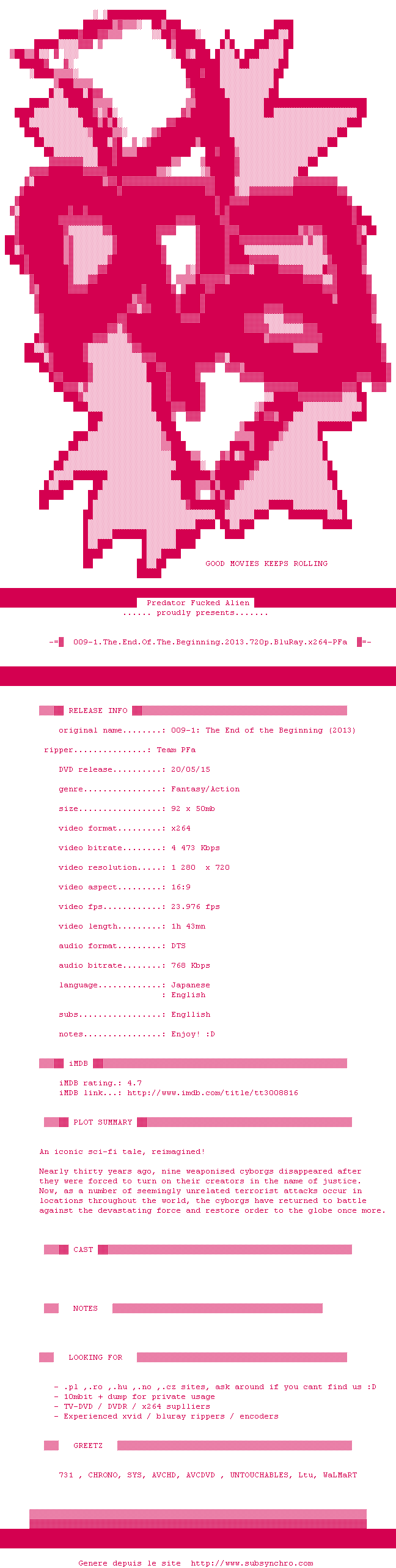 Date de sortie à l'etranger :