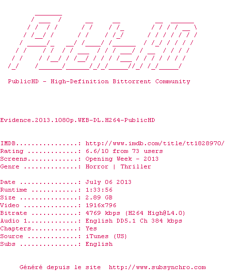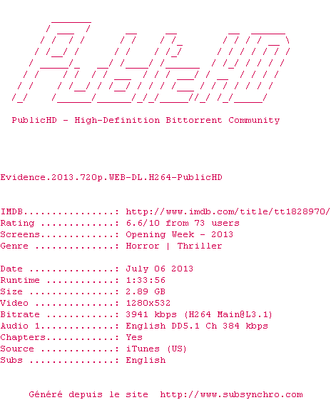 Voir le nfo de la release Evidence.2013.1080p.WEB-DL.H264-PublicHD