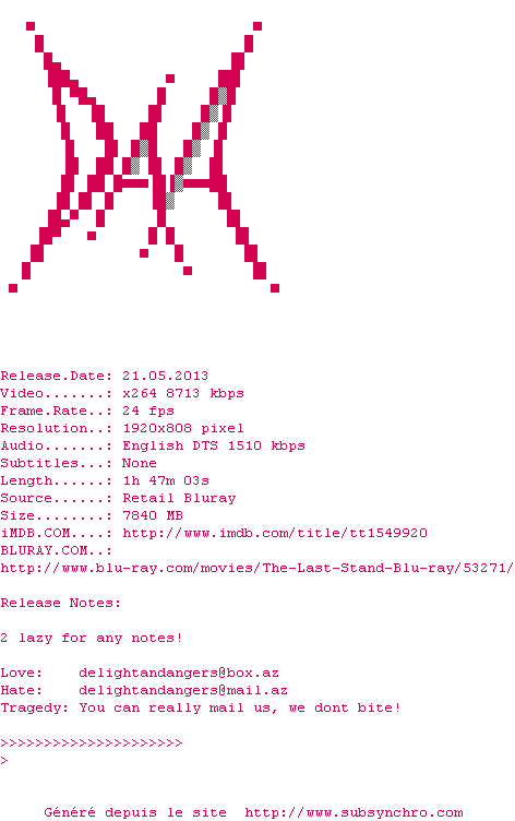 Un Schwarzy vieillissant ne veut pas forcément dire un mauvais Schwarzy! Le vieil actioner a toujours sacrément de punch, et les nombreuses scènes d'action ainsi que certaines touches d'humour bienvenues font de ce film une excellente surprise et une bonne série B.