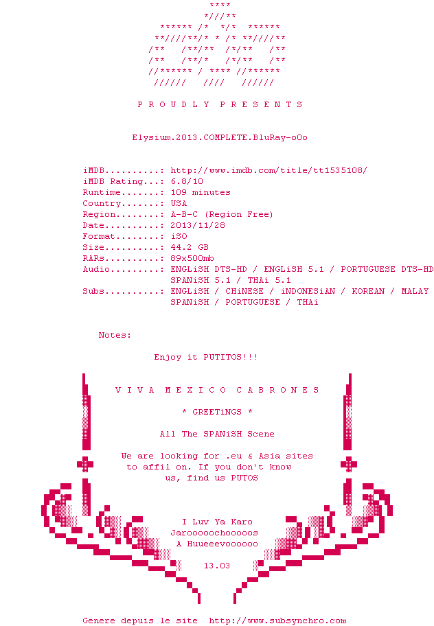 A en juger par son dénouement franchement expéditif et surtout consensuel, Elysium tient finalement plus d&39;un divertissement musclé que d&39;une oeuvre de S.F épique et intemporelle. L&39;ensemble, généreusement emballé, apporte quand même son lot de satisfactions !