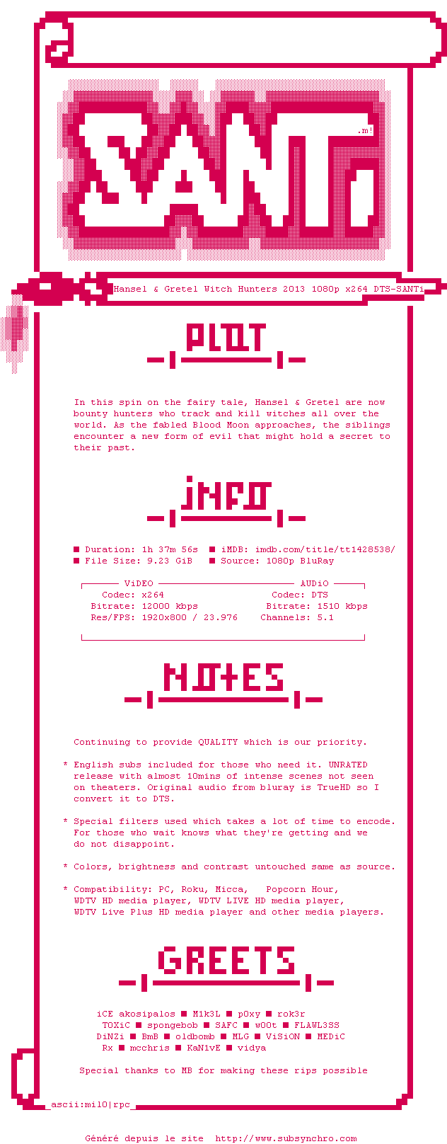 Désolé mais j'ai adoré ! Je déteste les histoires de conte et là ce mélange de moyen-age avec des armes un peu anachroniques, des dialogues vulgaires et des sorcières bien flippantes a réussi a concocter pour moi un super film d'action. J'ai été curieux de voir les critiques de presse désastreuses et j'avoue que la critique de Mad Movies (Pressreview20438133" target=_blank">http://www.allocine.fr/film/fichefilm-175244/critiques/presse/Pressreview20438133) résume bien la situation mais si c'est ca qu'on aime, on trouve ça juste parfait !