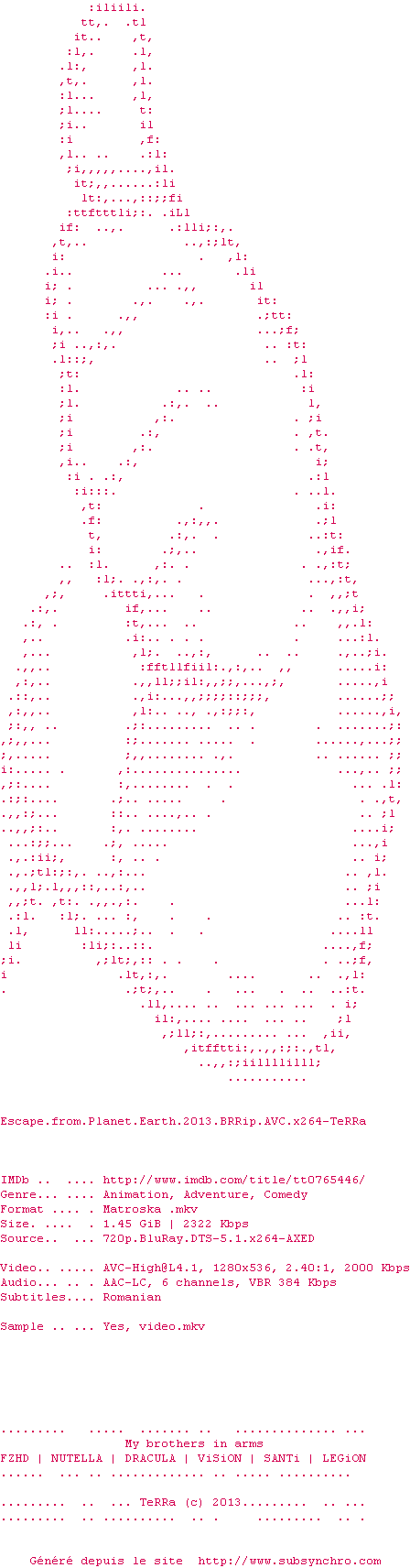 Le commentaire de Yaumegui Commente par Yaumegui (554), Le Samedi 05 Juillet 2014 à 23h39 Rien de transcendant, cet animé est un mixte de grosses productions. Mais ce n'est pas non plus honteux, un peu trop long et on aurait aimé que le rôle de la maman soit un peu plus étoffé. Les enfants semblent avoir apprécié. 6 / 10 0 1