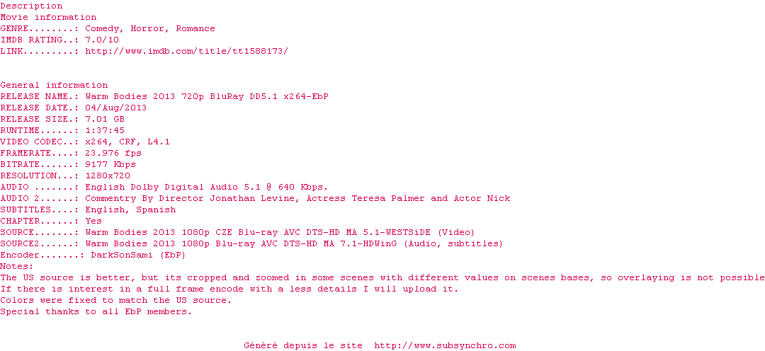 Quelques lourdeurs, légèrement ado, mais quelques passages bien sympas, rigolo, une bonne idée) ! a voir mais pas spécialement a revoir