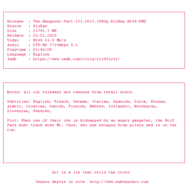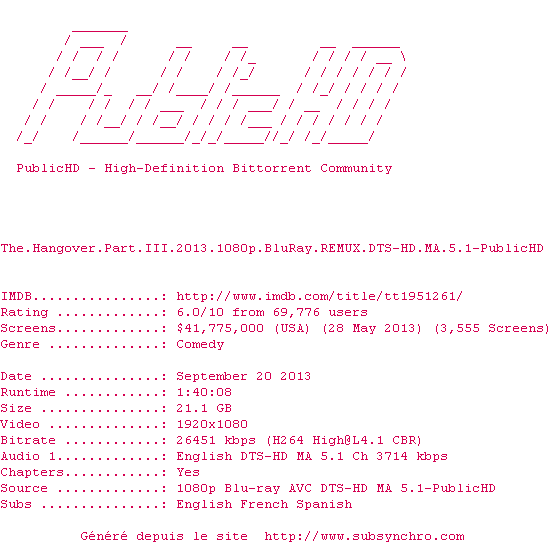 Il y a 4 commentaires pour le film #6774 !Le commentaire de SubSynchro