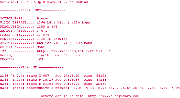 Le commentaire de fifi623 Commente par fifi623 (28), Le Dimanche 08 Fevrier 2015 à 03h36 Tout le contraire pour moi !!! Le scénario est inexistant, les courses-poursuite sont moisies, le jeu d'acteur est mauvais, le fait que ce soit filmé de l'intérieur de la voiture ne donne aucune plus-value à ce navet, ... Je ne m'attendais pas à un grand film, mais je pensais qu'il serait au moins divertissant, ce qui n'est pas le cas. Bref passez votre chemin, on s'ennuie à mourir. 0.5 / 10 0 0