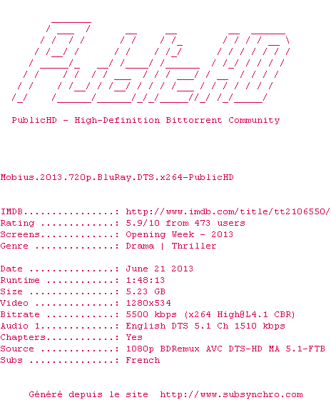 En dépit de son intrigue un peu alambiquée, Möbius, pétri d'une troublante sensualité, garantit quelques frissons vertigineux.