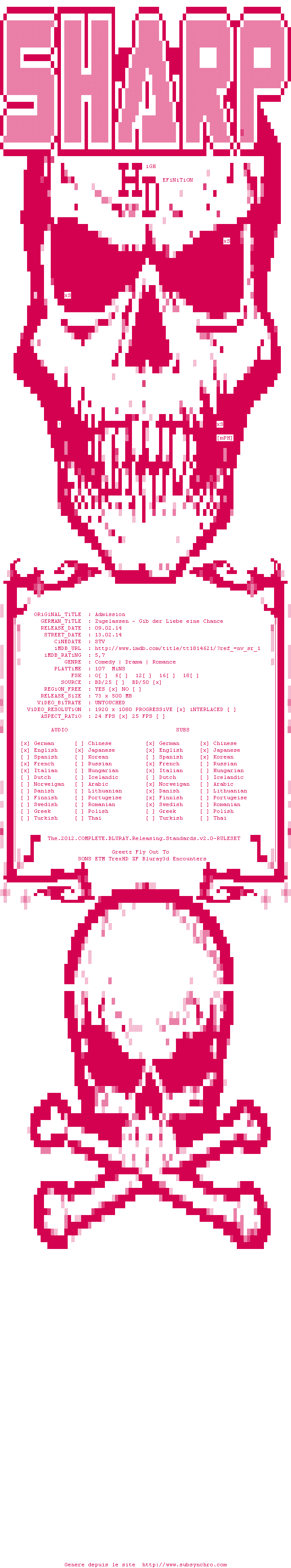 Voir le nfo de la release Admission.2013.MULTi.COMPLETE.BLURAY-SharpHD