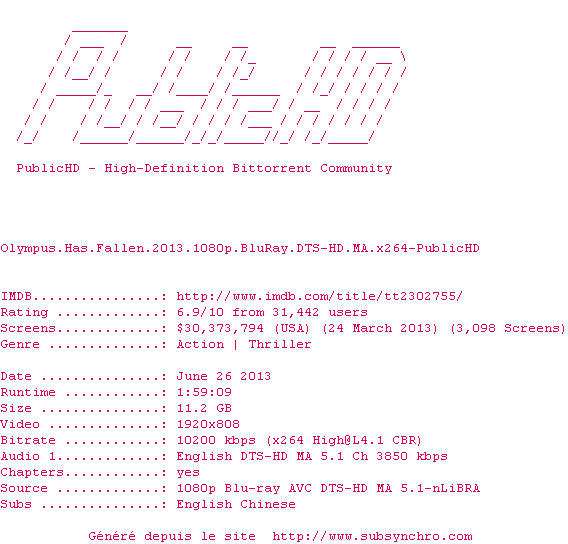 Pour ma part j'ai vraiment "kifer" le film, genre film d'action à l'ancienne avec un Butler au top (l'acteur jouant le président des USA un peu con... mais bon) une belle histoire, visuel assez bien foutu, qualité bluray obligé!