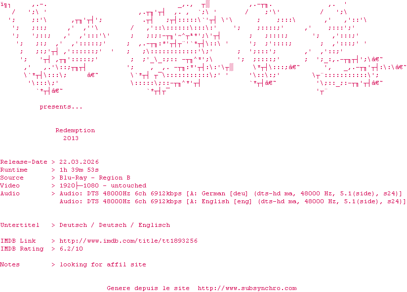 Y avez-vous pense ? Nous proposons déjà 1197 sous-titres pour le film Crazy Joe. Avez-vous essaye de voir si ces sous-titres etaient compatibles avec cette release ? On vous laisse le soin de tester cela pour nous et de contribuer au site en postant le sous-titre en cas de compatiblite constatee !