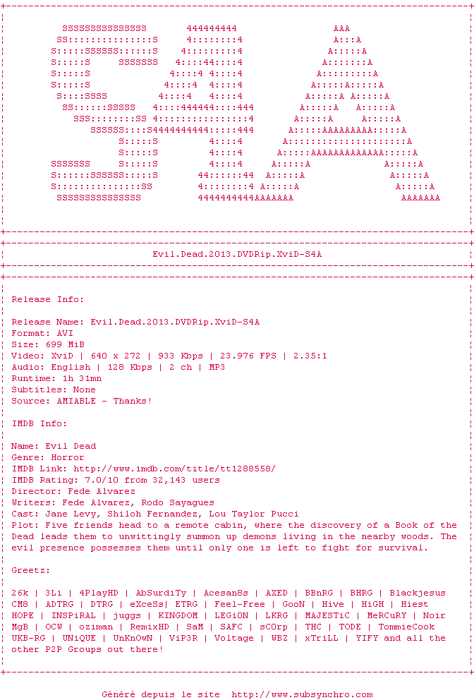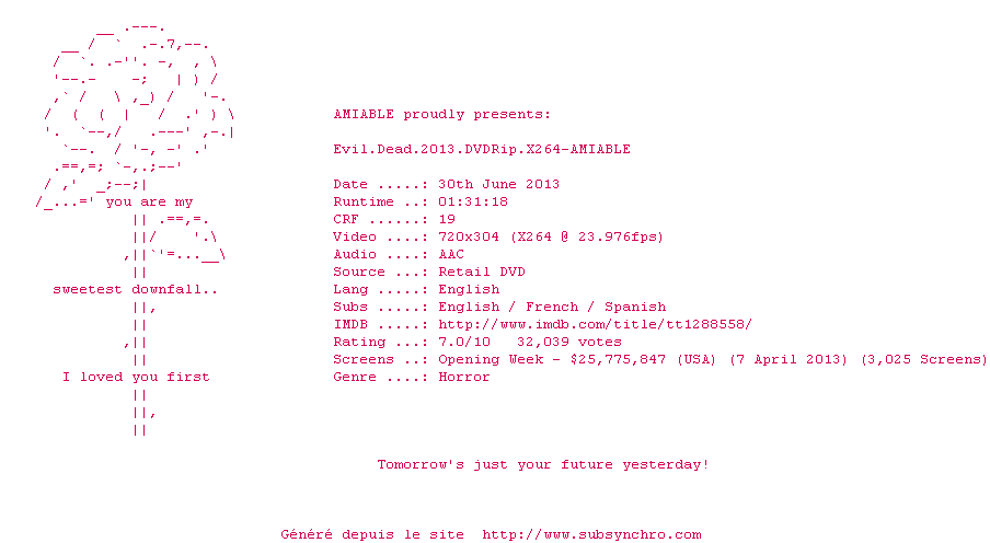 Et voilà il fallait s'en douter ce remake ne fait absolument pas d'ombre à l'original qui reste, 30 ans plus tard, une reference d'originalité. Et ce qui faisait l'originalité d'Evil Dead, outre son aspect delicieusement amateur, c'etait cette volonté de se reapproprier les regles du cinema pour en faire un veritable exercice de style.