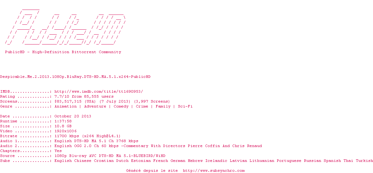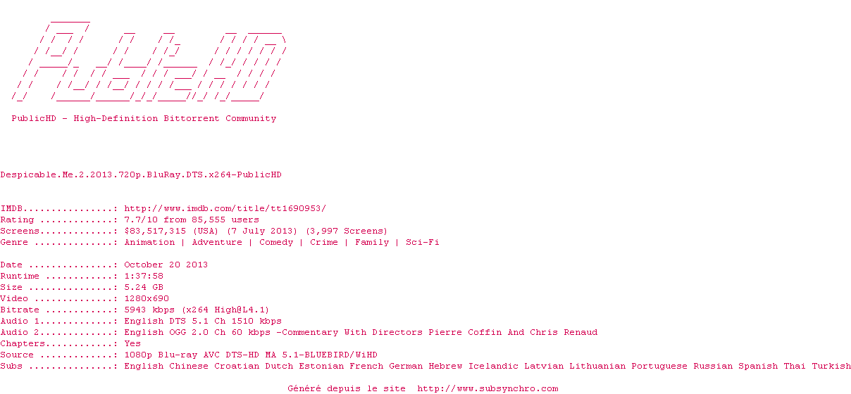 Moi, Moche et Méchant 2 (Despicable Me 2) , realise en 2013