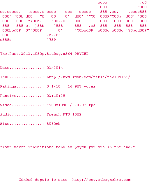 Le commentaire de Un membre qui nexiste plus Commente par un visiteur, Le Lundi 21 Octobre 2013 à 16h38 Encore un suspens du quotidien pour Farhadi, de nouveau une réussite, même si je préfère ses films iraniens. 9 / 10 1 0