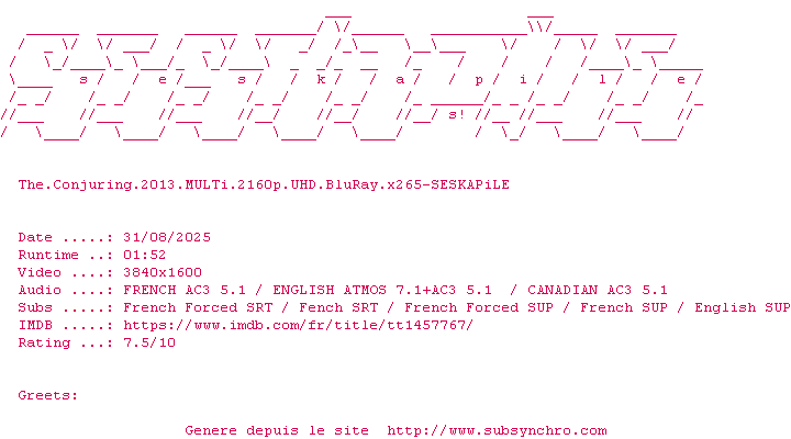 J'adore James wan, même si il abuse beaucoup trop d'effets sonores too much dans ce film, et même si ce n'est pas aussi fun qu' Insidious, Conjuring reste très haut dans mon top film d'horreur 2013. A voir absolument quand on est fan du genre.