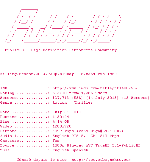 Trop marrant Travolta avec son accent Serbe!! (Contrairement à ce que dit le résumé il ne s'agit pas de la guerre du Viet-Nam). Plus sérieusement, très belle fable ou deux anciens protagonistes règlent leurs comptes. La situation tient un peu de la farce puisque les deux hommes prennent le dessus alternativement, d'une façon un peu grotesque... Mais finalement il s'avère qu'il est bien plus important pour eux de régler leurs comptes avec eux-même. Une belle fable donc, non pas sur la guerre, mais plutôt sur les hommes qui la font.