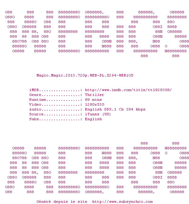 Voir le nfo de la release Magic.Magic.2013.720p.WEB-DL.x264.AC3-RARBG