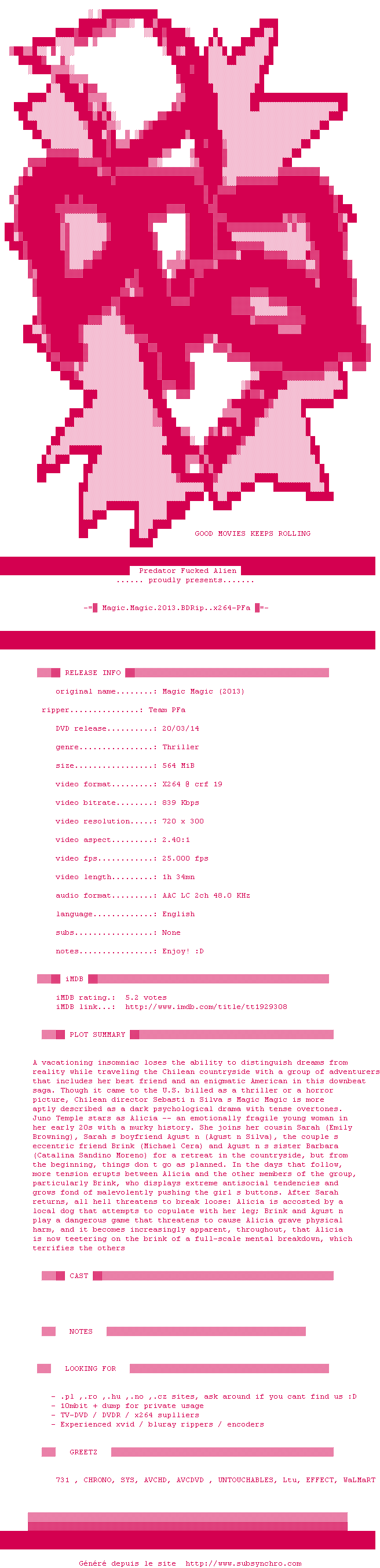 Voir le nfo de la release Magic.Magic.2013.BDRip.x264-PFa