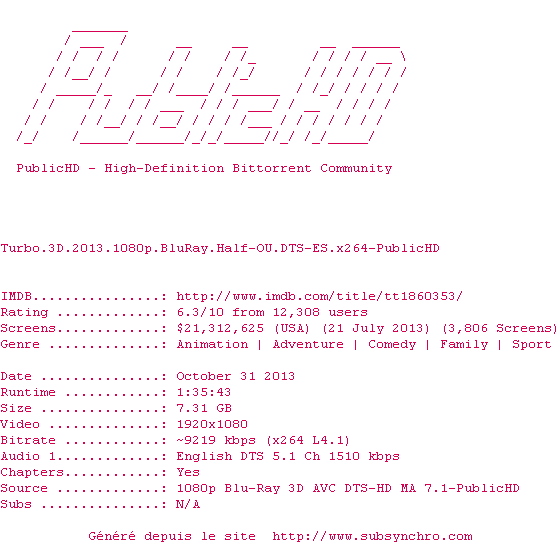 une bonne surprise, autant planes est une bouse sans aucune originalité autant turbo est vraiment bien trouvé, fun et drole, de bout en bout. Les enfants adorent aussi.