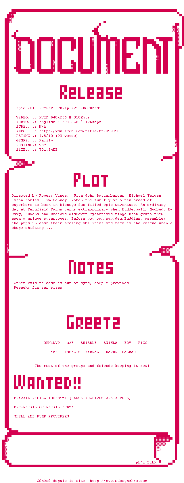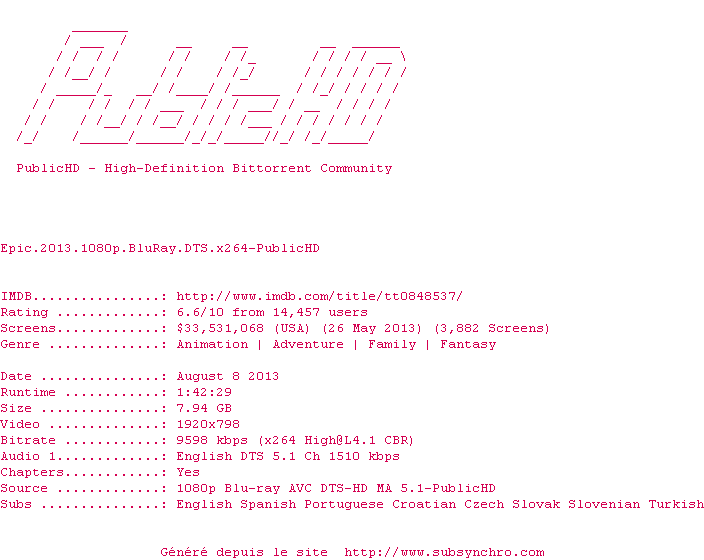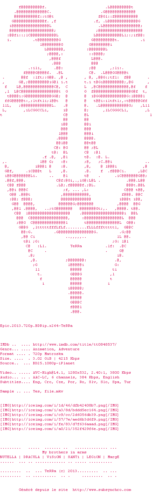 Cet Epic est une très bonne surprise! L'univers soigné et riche en couleurs, les personnages charismatiques et drôles ainsi que de nombreuses bonnes idées font de ce film d'animation un très bon moment à passer ainsi qu'un bon moyen pour retomber en enfance.
