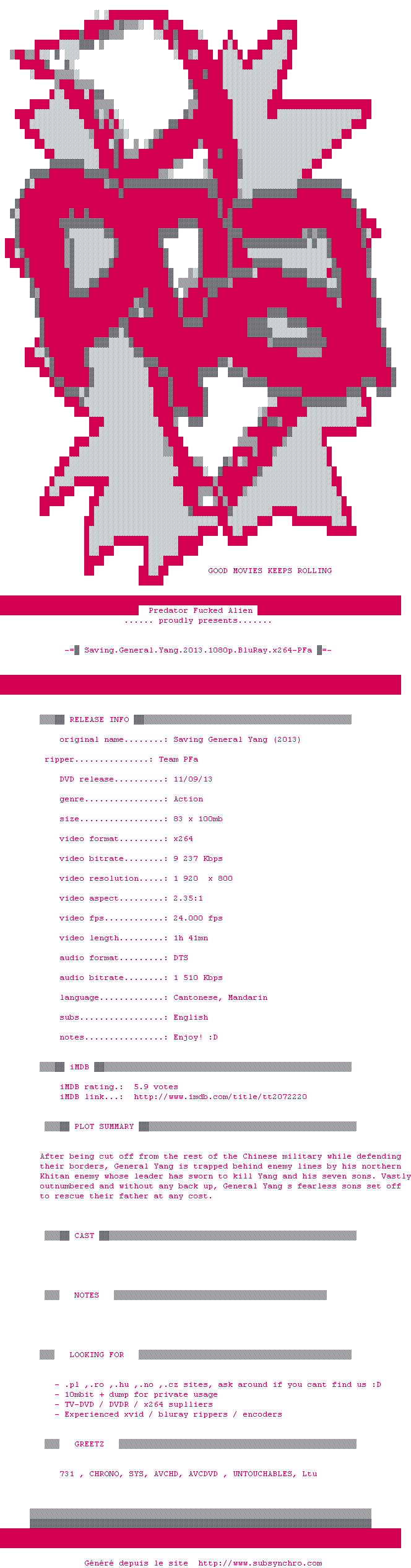 Voir le nfo de la release Saving.General.Yang.2013.1080p.BluRay.x264-PFa