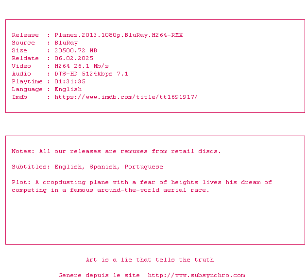 Le défaut majeur de Planes est finalement de ne présenter aucune aspérité. Ses flagrantes intentions de livrer un film utra-policé le rendent un peu rasoir. Il plaira cependant aux plus jeunes pour son rythme, son animation soignée et son manque cruel de références qui ne mettra personne sur la touche.