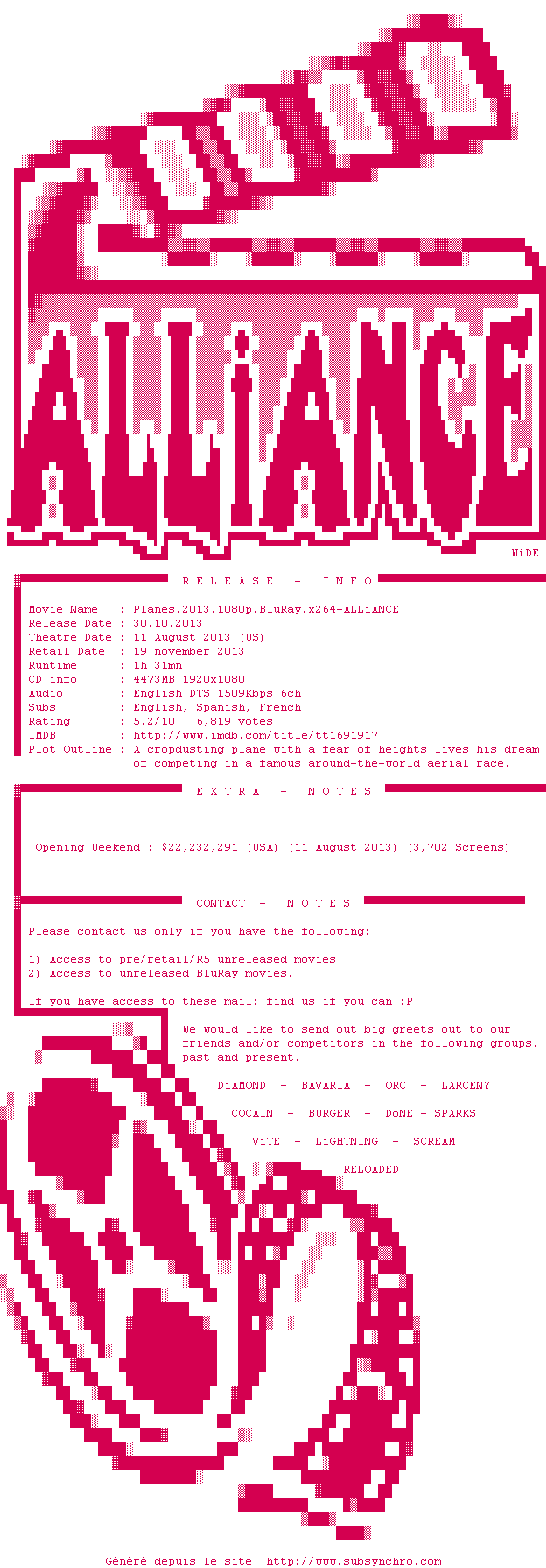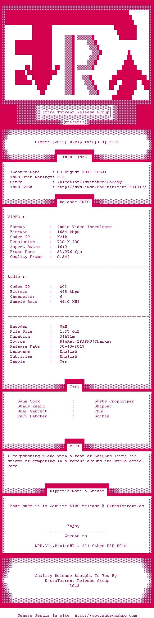 Planes c&39;est comme le Canada Dry : ca ressemble à Cars, ca a les dessins de Cars mais c&39;est loin d&39;être Cars. Décidément depuis le rachat par Disney, Pixar est en manque cruel d&39;inspiration, de créativité et d&39;originalité ... ca plaira au fan d&39;avions et aux petits.