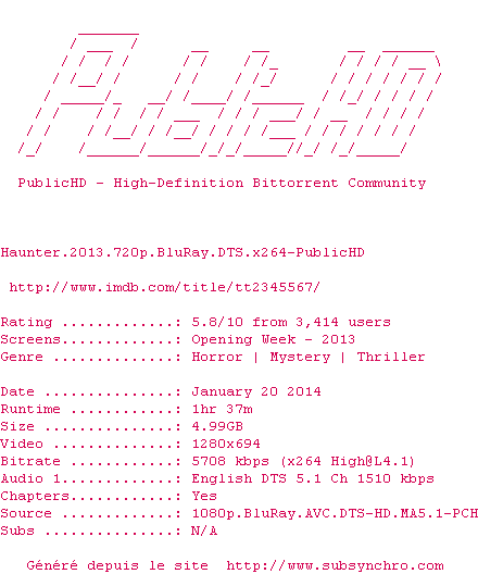 Le commentaire de f*art! Commente par f*art! (8), Le Lundi 20 Janvier 2014 à 17h33 Beaucoup de clichés et de déjà -vu dans ce film. Mais, sur un plan formel l'ensemble est plutôt réussi et cohérent. En bref j'ai passé un bon moment tout en sachant que j'étais pas devant un chef-d’œuvre. Tentez votre chance ! 6 / 10 0 0