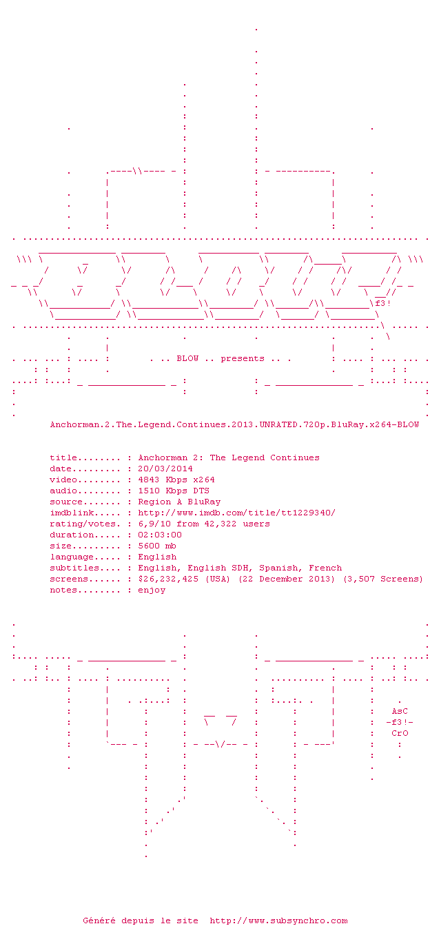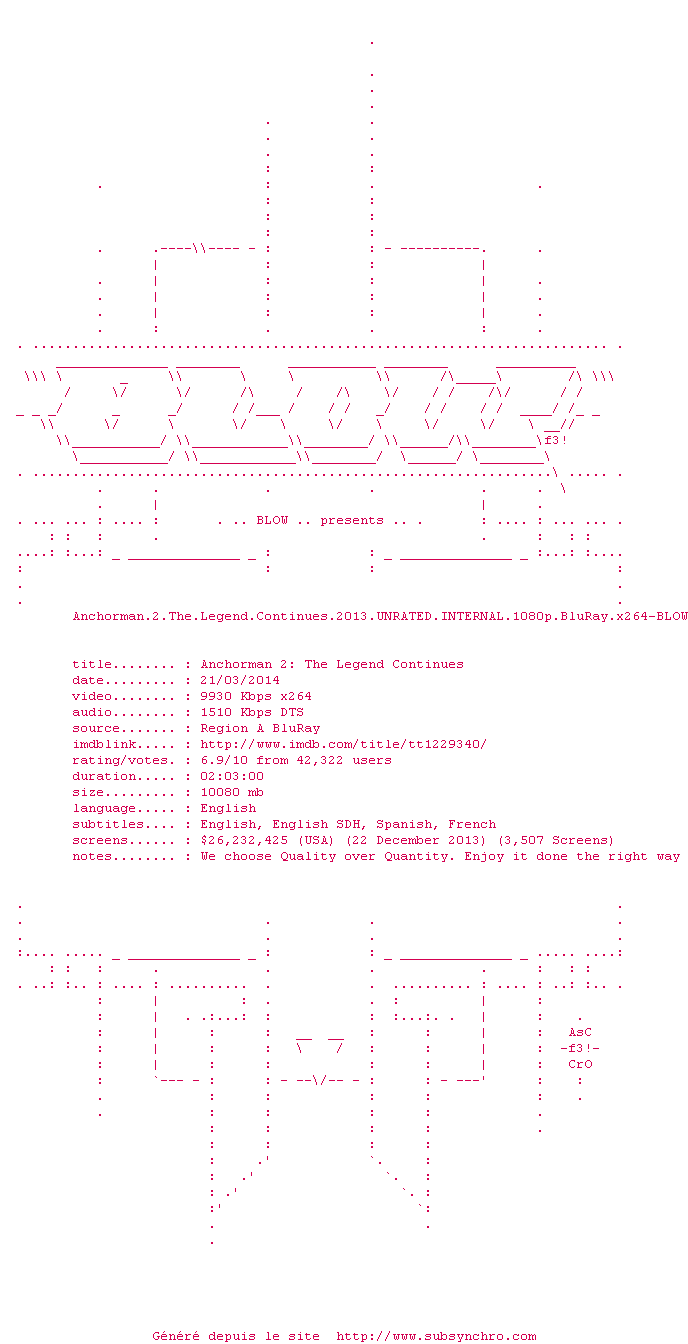 Le commentaire de nuagesept Commente par nuagesept (239), Le Samedi 15 Mars 2014 à 18h50 aussi bon que le 1er, ceux qui détestent Will Ferrel trouveront ça à chier comme d'habitude, perso j'adore 8.5 / 10 3 0