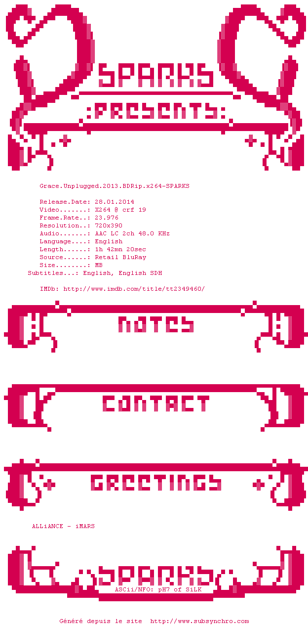 Voir le nfo de la release Grace.Unplugged.2013.BDRip.x264-SPARKS