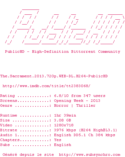 Le commentaire de jeanphilcarlos Commente par jeanphilcarlos (8), Le Samedi 09 Aout 2014 à 18h30 Une bien belle M... Dans le même genre, en 10.000 fois mieux, il y a Red State de Kevin Smith. 0 0