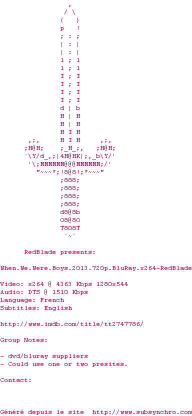 Voir le nfo de la release When.We.Were.Boys.2013.BDRip.x264-RedBlade