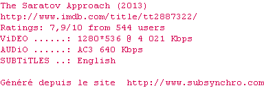 Voir le nfo de la release The.Saratov.Approach.2013.LiMiTED.BDRip.x264-ARROW