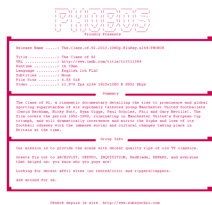 L'histoire de six garçons issus de la working-class anglaise de la banlieue de Manchester qui intègrent l'équipe de foot de leur ville en 1992, avec pour points communs une passion du jeu et une envie de gagner qui vont dépasser leur rêves. Face caméra, les six se livrent en toute camaraderie...