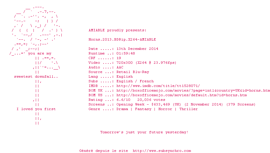 Retour a la release « Horns.2013.BDRip.X264-AMIABLE »