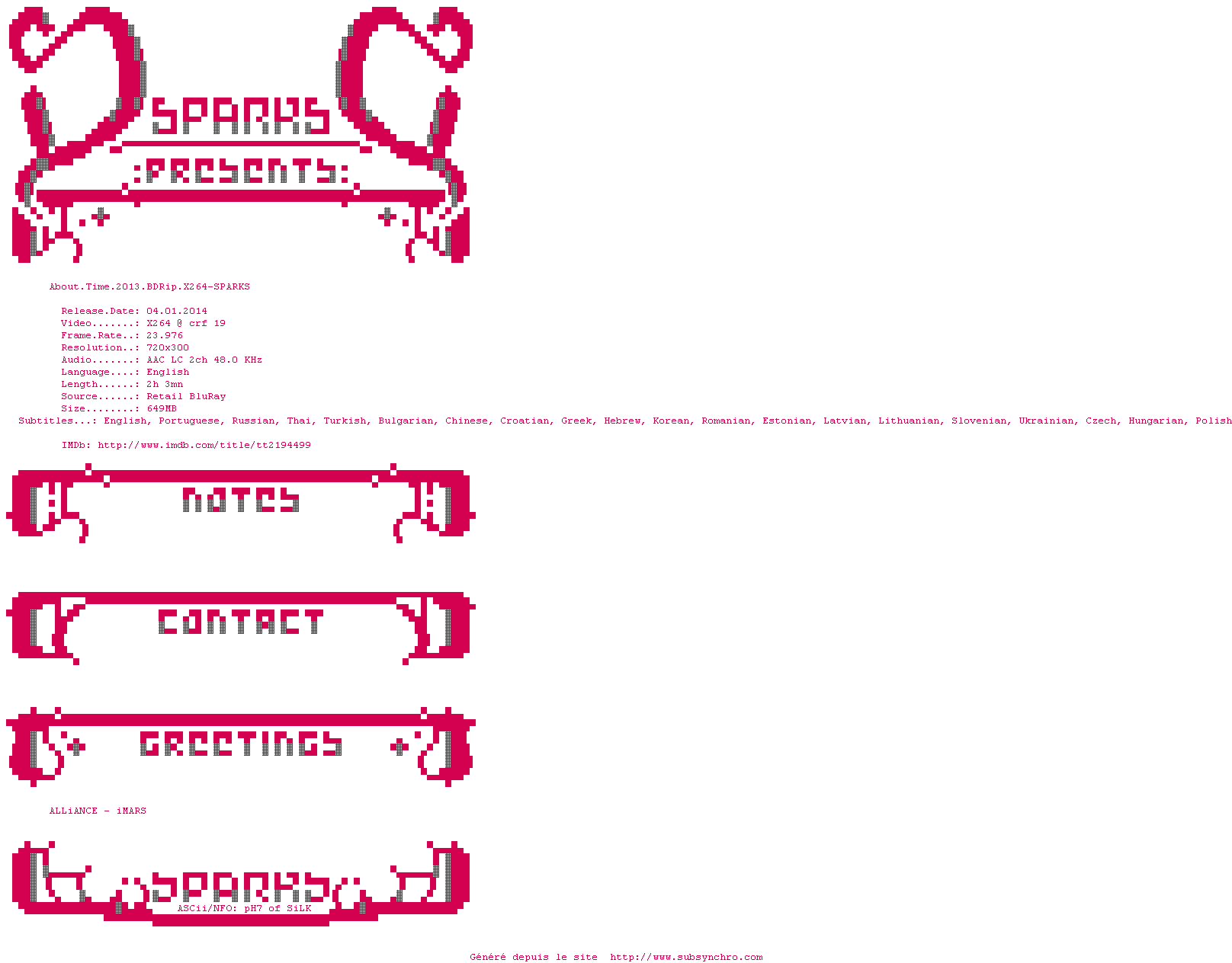 Telechargez le RSS « Fichier de la release About.Time.2013.BDRip.X264-SPARKS »