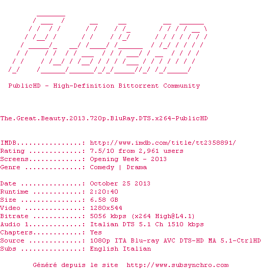 Commentez le fichier The.Great.Beauty.2013.720p.BluRay.DTS.x264-PublicHD.srt