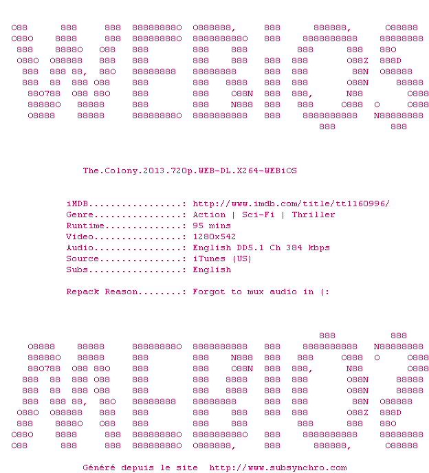 NFO de The.Colony.2013.REPACK.720p.WEB-DL.x264-WEBiOS