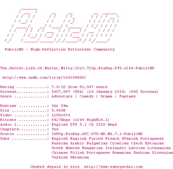 Telechargez le RSS « Fichier de la release The.Secret.Life.Of.Walter.Mitty.2013.720p.BluRay.DTS.x264-PublicHD »