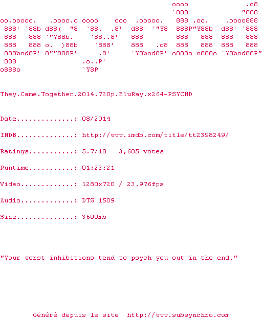 Voir le nfo de la release They.Came.Together.2014.1080p.BluRay.x264-PSYCHD