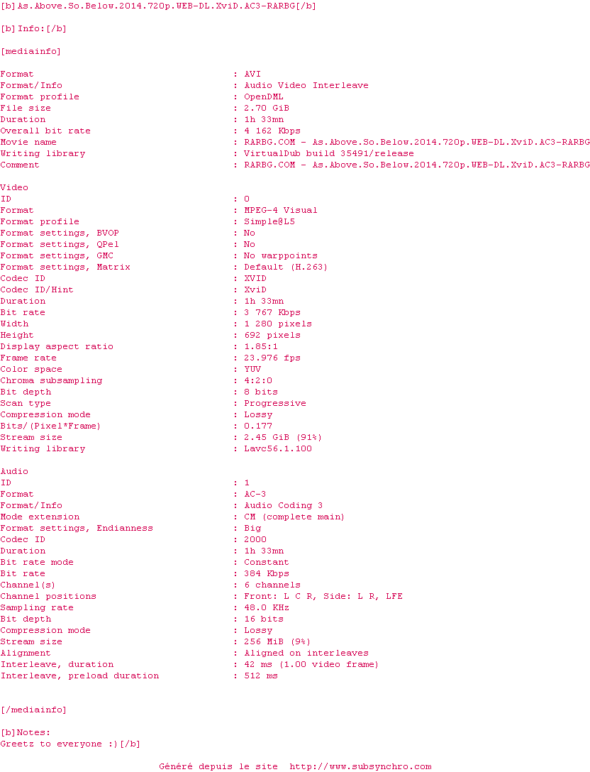 Le commentaire de SubSynchro Commente par SubSynchro (380), Le Lundi 25 Aout 2014 à 23h27 Il y a quelque chose ! Le fait que cela se passe à Paris rend le truc déjà plus angoissant, des comédiens francais qui parlent souvent francais pendant le film rend le truc encore plus complice, après c'est une route des films d'horreur en POV. Un peu long a démarré, des moments ou on comprend pas tout ce qui se passe mais on comprend que c'est chaud pour eux bref une bon ambiance de mal à l'aise où l'on peut s'empecher de rire en imaginant si l'on avait été a leur place. 8 / 10 0 0
