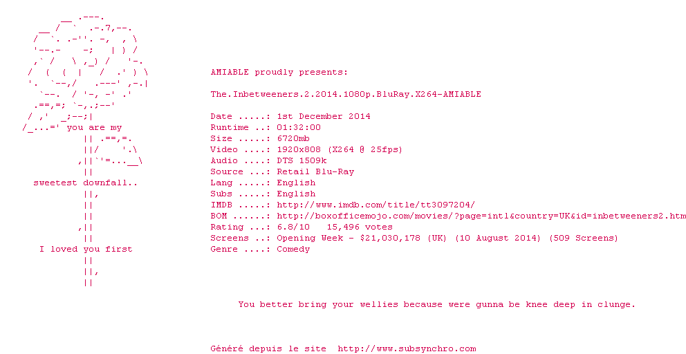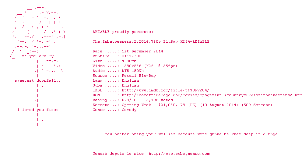 Voir le nfo de la release The.Inbetweeners.2.2014.BDRip.X264-AMIABLE
