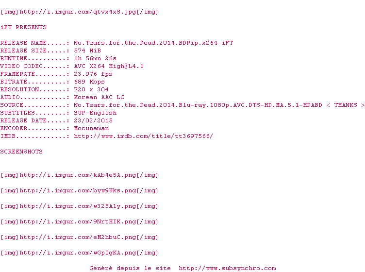 Voir le nfo de la release No.Tears.for.the.Dead.2014.720p.BluRay.DTS.x264-iFT
