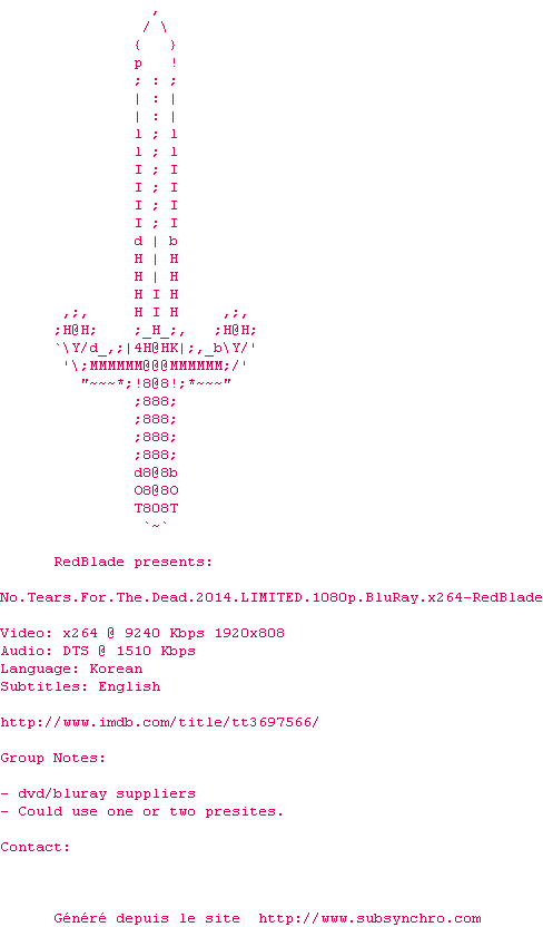 Voir le nfo de la release No.Tears.For.The.Dead.2014.LIMITED.BDRip.x264-RedBlade