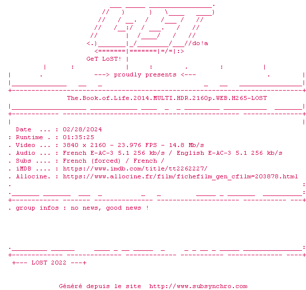 Le commentaire de Yaumegui Commente par Yaumegui (577), Le Vendredi 30 Janvier 2015 à 13h43 Un animé très sympa sur le thème des morts au Mexique. Le scénario et les dialogues sont assez originaux pour plaire autant aux enfants qu'aux parents. A voir à partir de 5 ans. 8 / 10 0 0