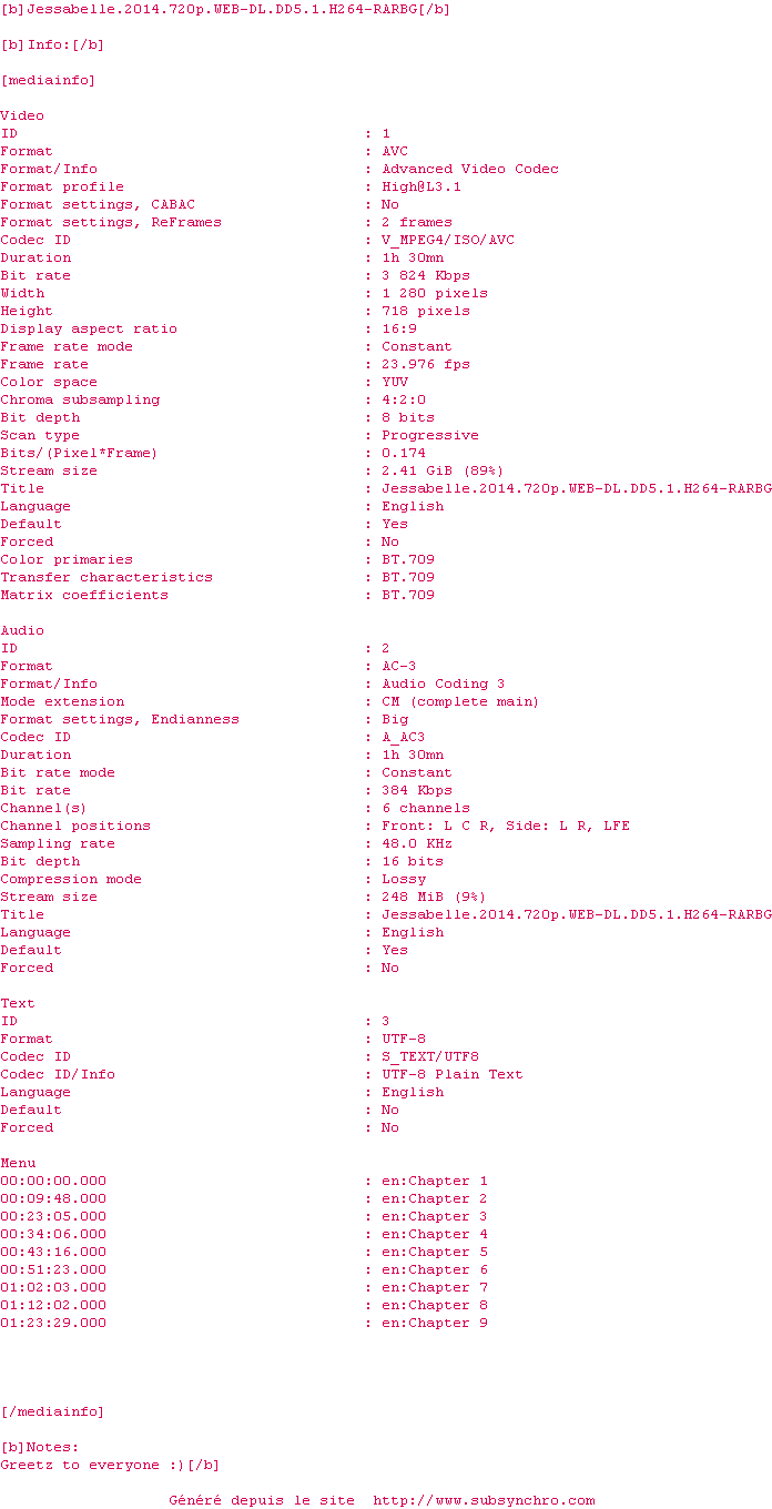 Voir le nfo de la release Jessabelle.2014.720p.WEB-DL.DD5.1.H264-RARBG